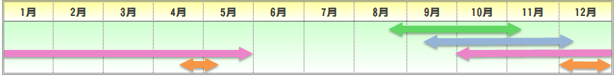 | 播種期 | 定植期 | 収穫期 | 出荷最盛期 |