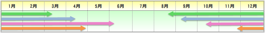 | 播種期 | 定植期 | 収穫期 | 出荷最盛期 |