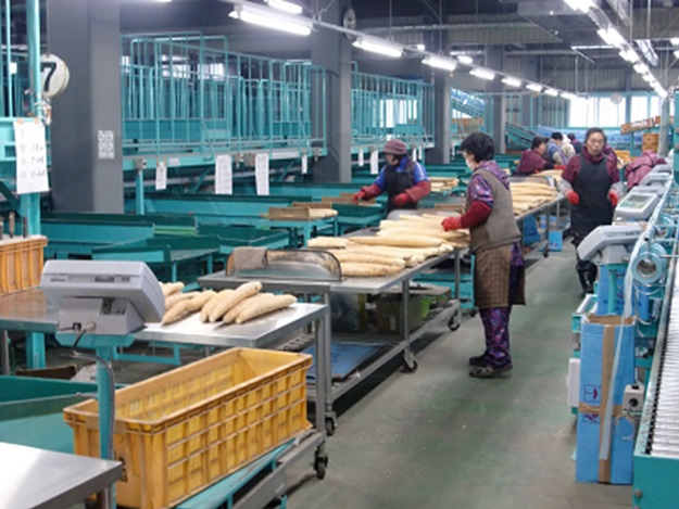 ・調査圃場秋掘分の掘取り終了につき、関連する共選洗浄出荷施設を調査。