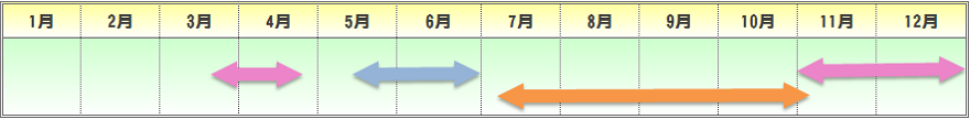 | 播種期 | 定植期 | 収穫期 | 出荷最盛期 |