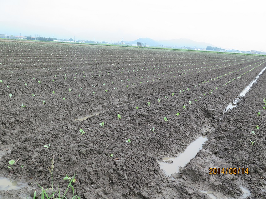 また定植後の圃場では、湿害による生育不良や欠株が多く見られる。