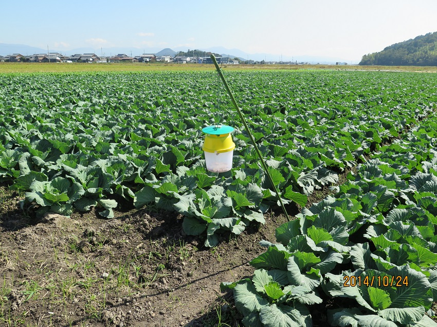 ・中段:結球はじめ(直径が携帯電話と同じ) ・下段:フェロモントラップによる発生予察圃場 | ||||||