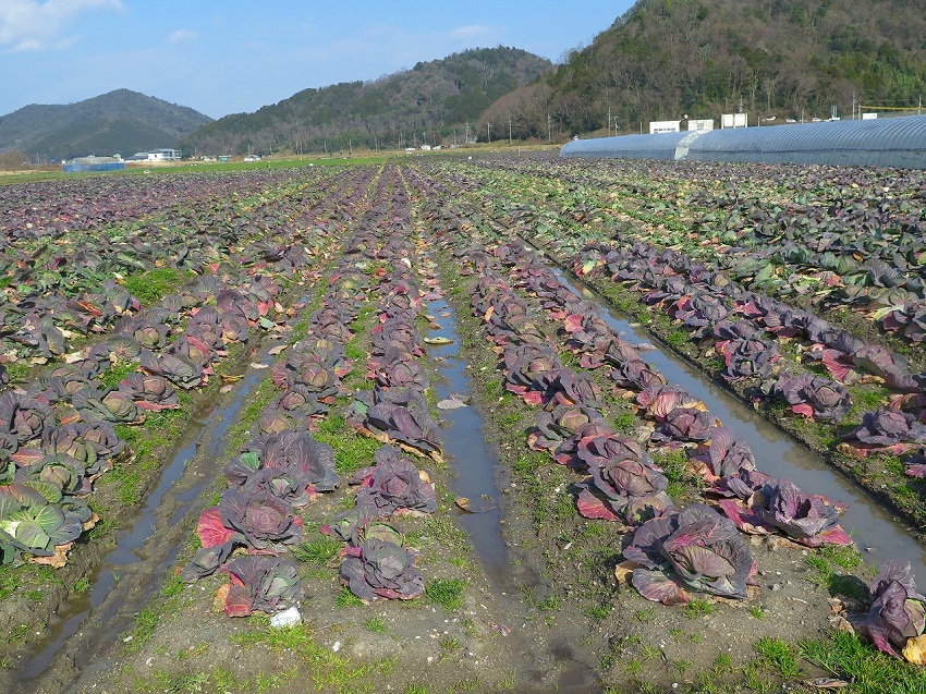 ・キャベツは水田で栽培されているため、大雨の影響により深刻である。