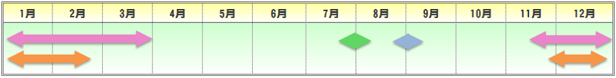 | 播種期 | 定植期 | 収穫期 | 出荷最盛期 |