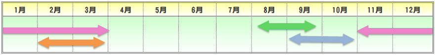 | 播種期 | 定植期 | 収穫期 | 出荷最盛期 |