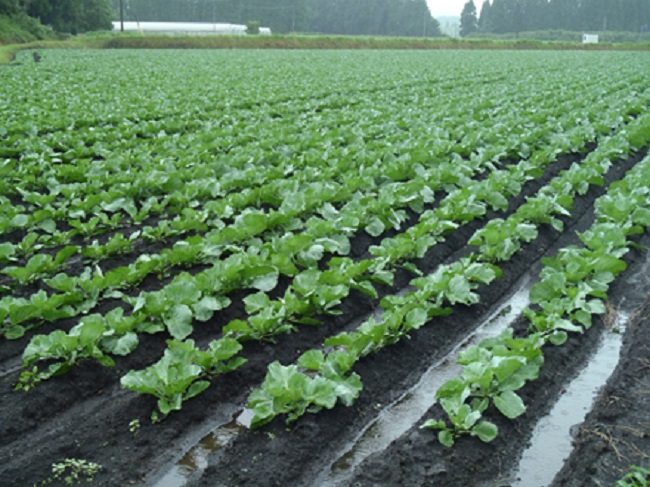 ・曇雨天の中、生育遅延(10日程度)、病害の発生(黒腐病) 防除の機会が少ない ・収穫中 圃場 | ||||||