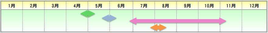 | 播種期 | 定植期 | 収穫期 | 出荷最盛期 |