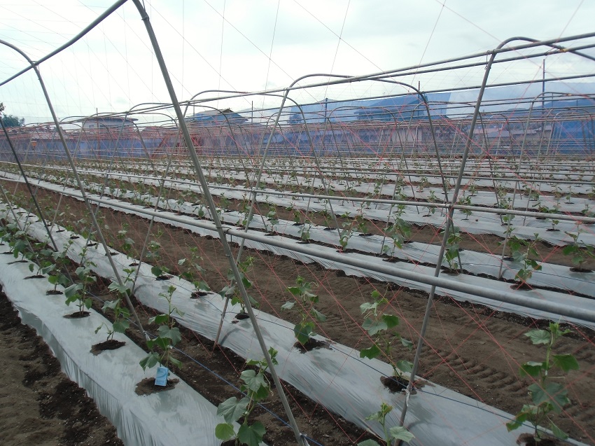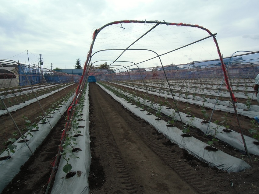 ・播種…4月25,26日 ・定植…6月2日 ・植栽本数…700本/10a ・収穫始め…7月上旬予定 ・収穫終り…10月中旬頃 ・好天で暑さの為成長がやや遅い状況にある。雨が少ない状況によりかん水が必要であり、苗等は徒長気味。 | ||||||