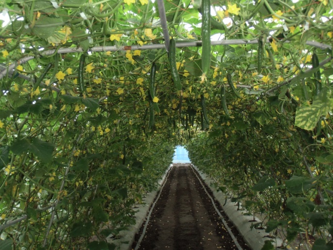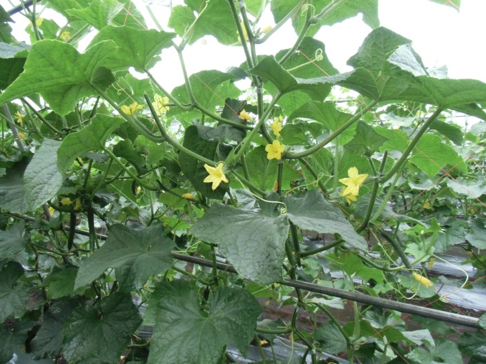 ・中段:やや樹勢が劣るも立派に実る。 ・下段:きゅうりの花芽と沢山の花です。 | ||||||