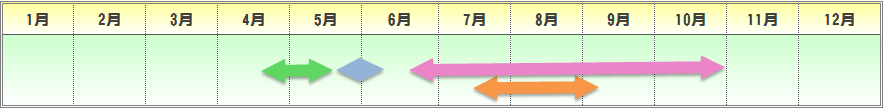 | 播種期 | 定植期 | 収穫期 | 出荷最盛期 |