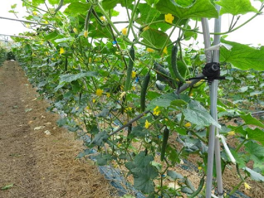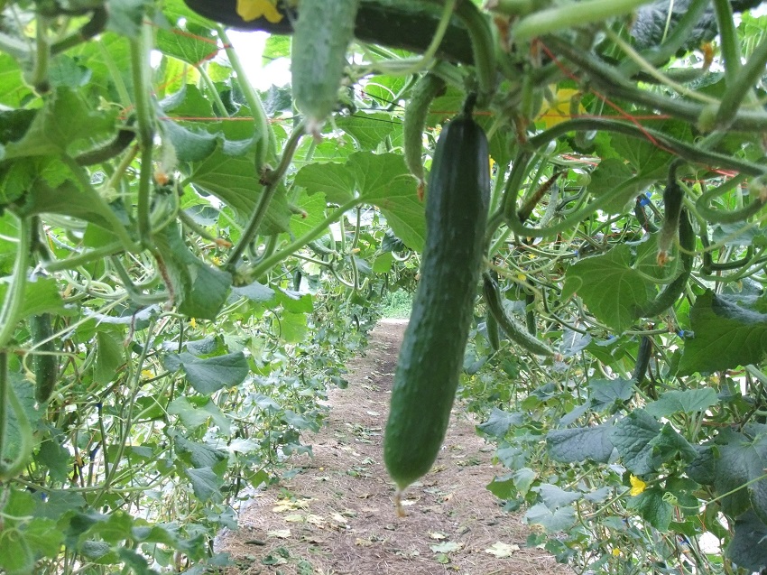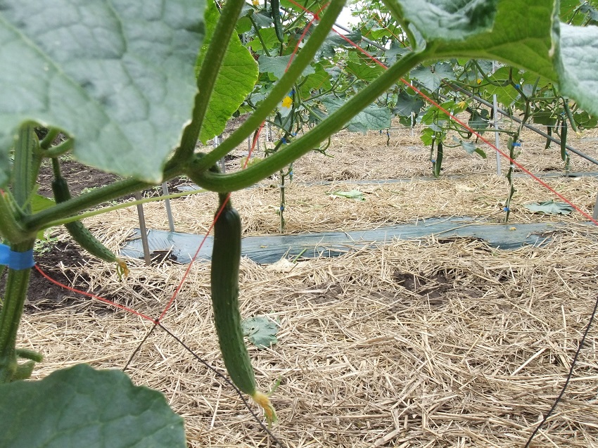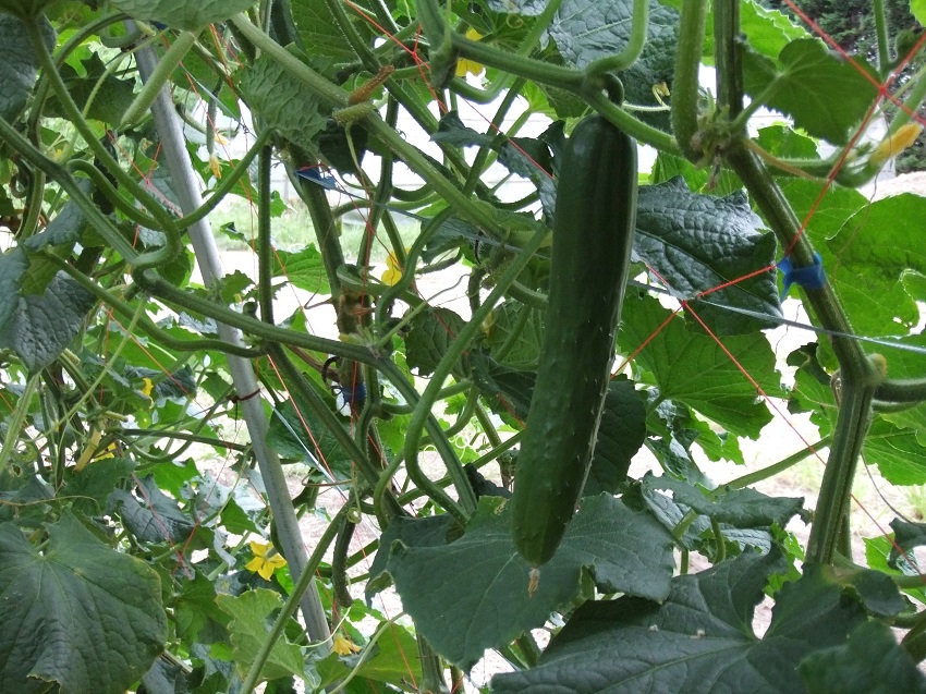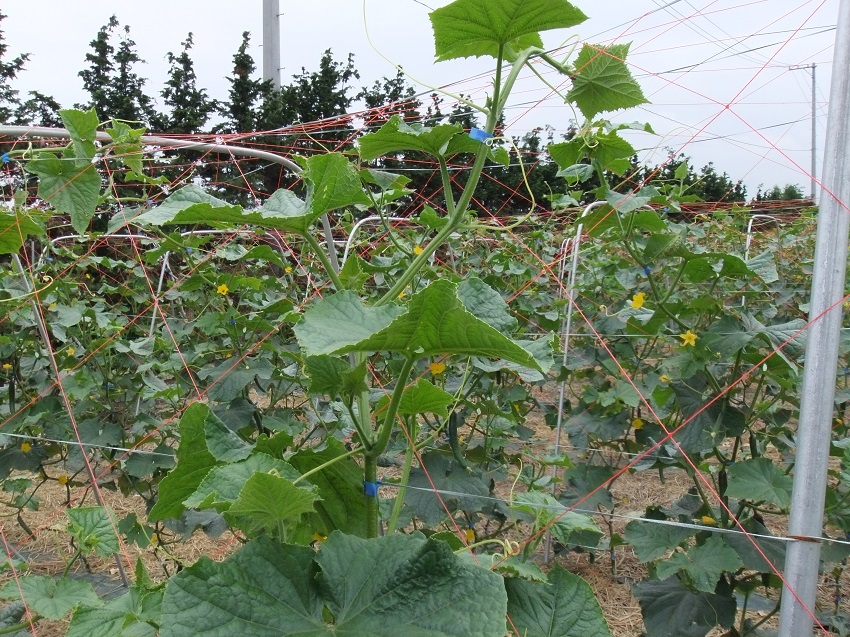 ・ネット上段まで生育。主枝の中段側枝より収穫中。