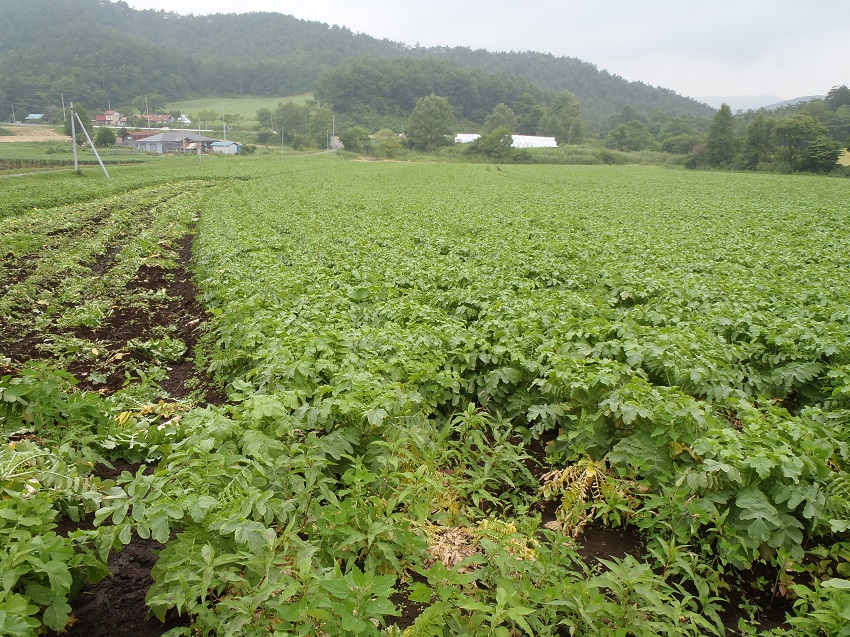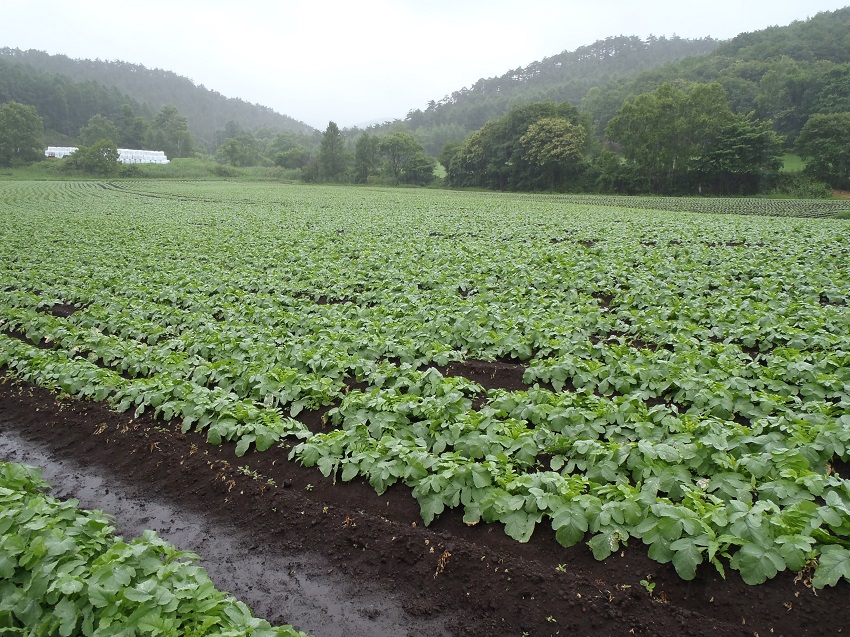 これは、定植期の干ばつから一転して生育期に天候が回復し、急激に生育したためではないかとみている。 ・今月に入り雨が多く、時折ゲリラ豪雨もあるとのこと、定植した畝等が崩れているところも多い。 ・降雨ばかりで防除作業ができないため、今後の病害虫の増加が懸念される。 | ||||||