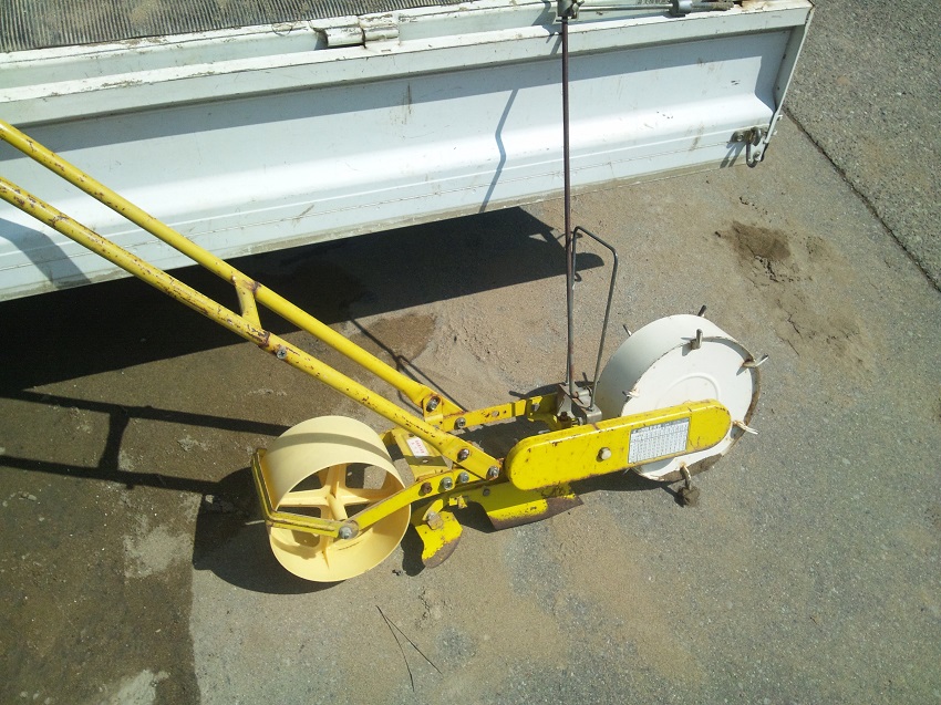 ・下段:播種の道具(車輪間に種の入ったタンクを取り付けて播く) | ||||||