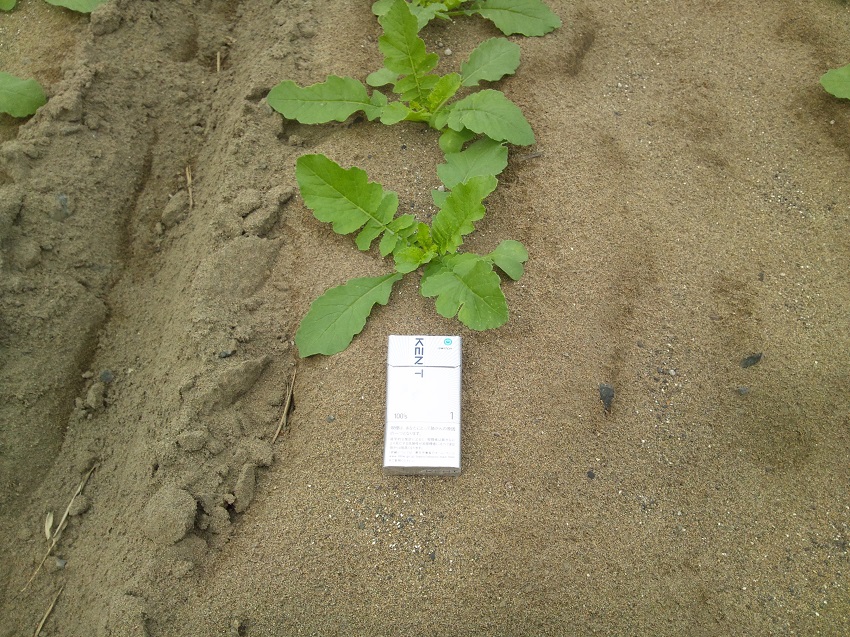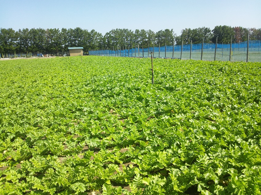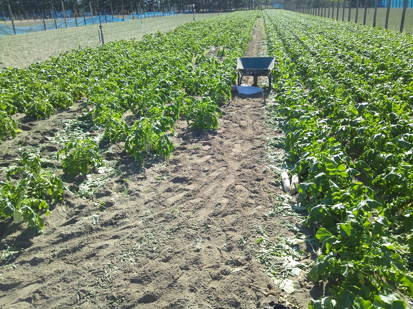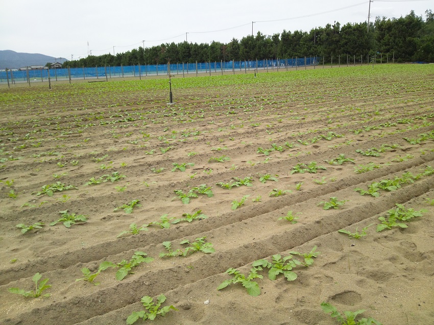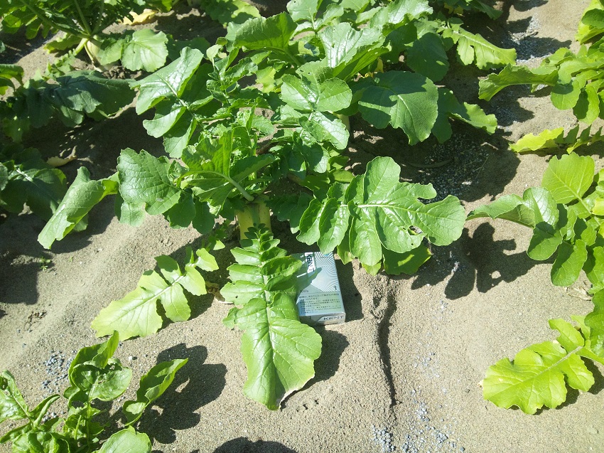 ・下段:根菜(実)は例年より細身である(9月上旬播種の圃場)。 | ||||||