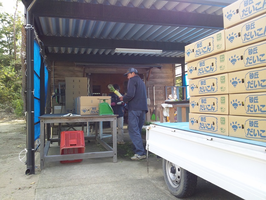 ・下段:収穫した大根の箱詰め(JA集荷場への搬送直前) | ||||||
