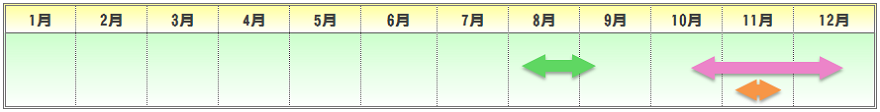 | 播種期 | 定植期 | 収穫期 | 出荷最盛期 |