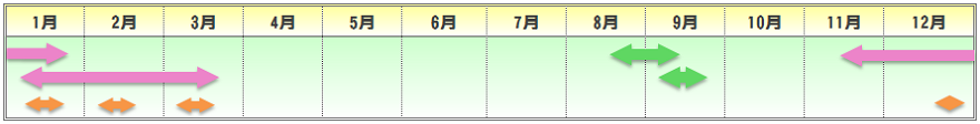 | 播種期 | 定植期 | 収穫期 | 出荷最盛期 |
