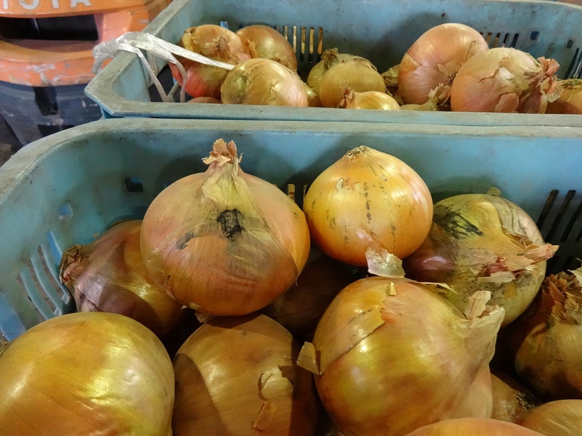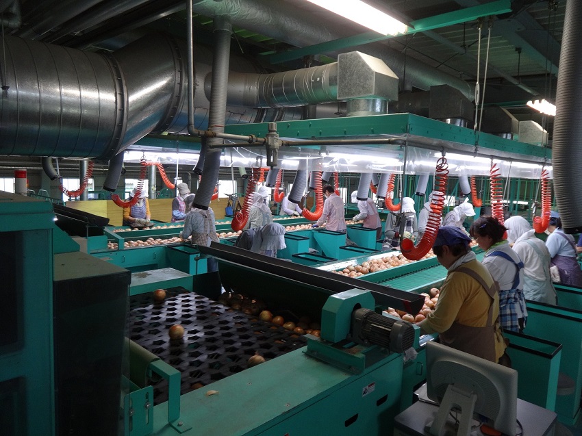 ・下段の写真は墨入りのたまねぎ。気温の急激な上昇と不十分な乾燥によって黒くなっている。