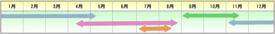 | 播種期 | 定植期 | 収穫期 | 出荷最盛期 |