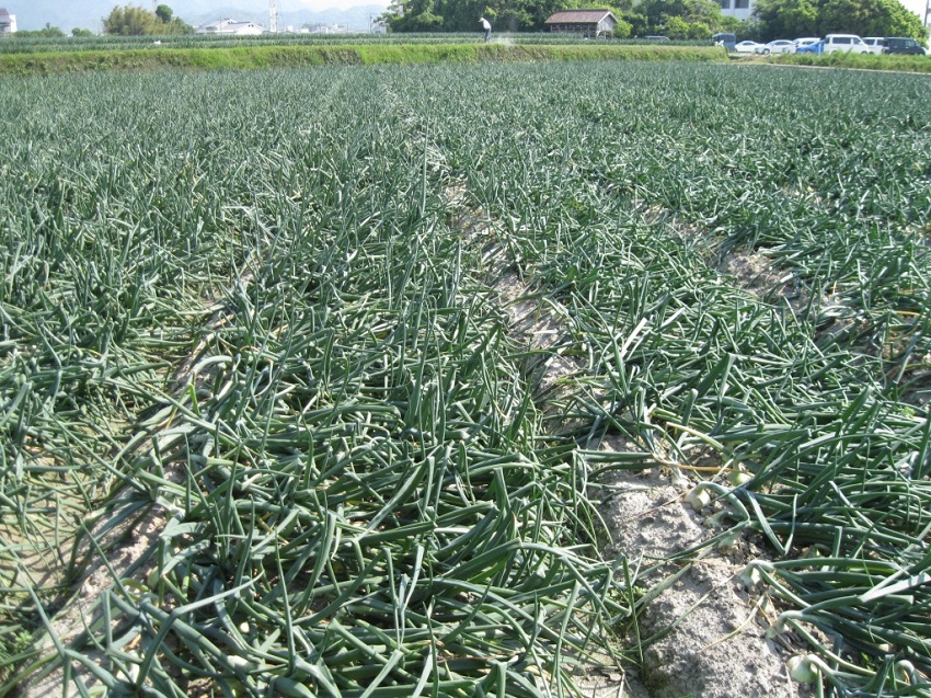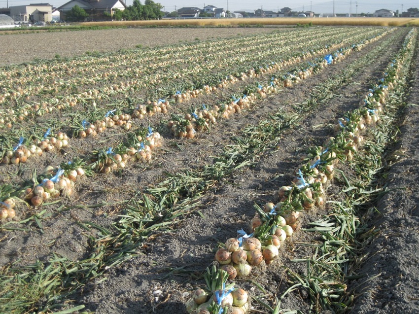 ・中生(ターザン)の収穫時期で、天候も良く、乾燥した玉葱の収穫が出来ている。