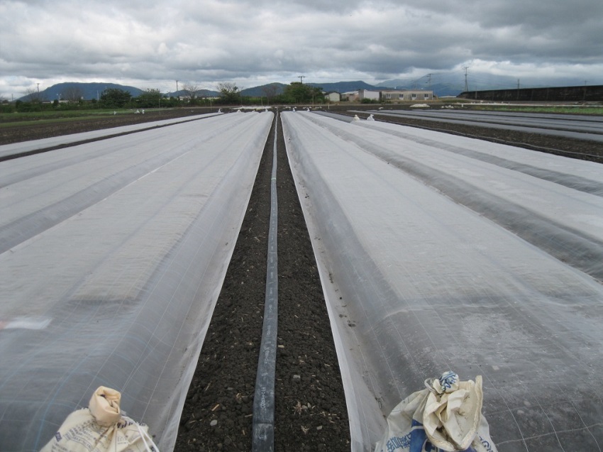 ・水稲収穫後、10月末は天気が良かった為、マルチ張りが10月下旬〜11月上旬で終了。