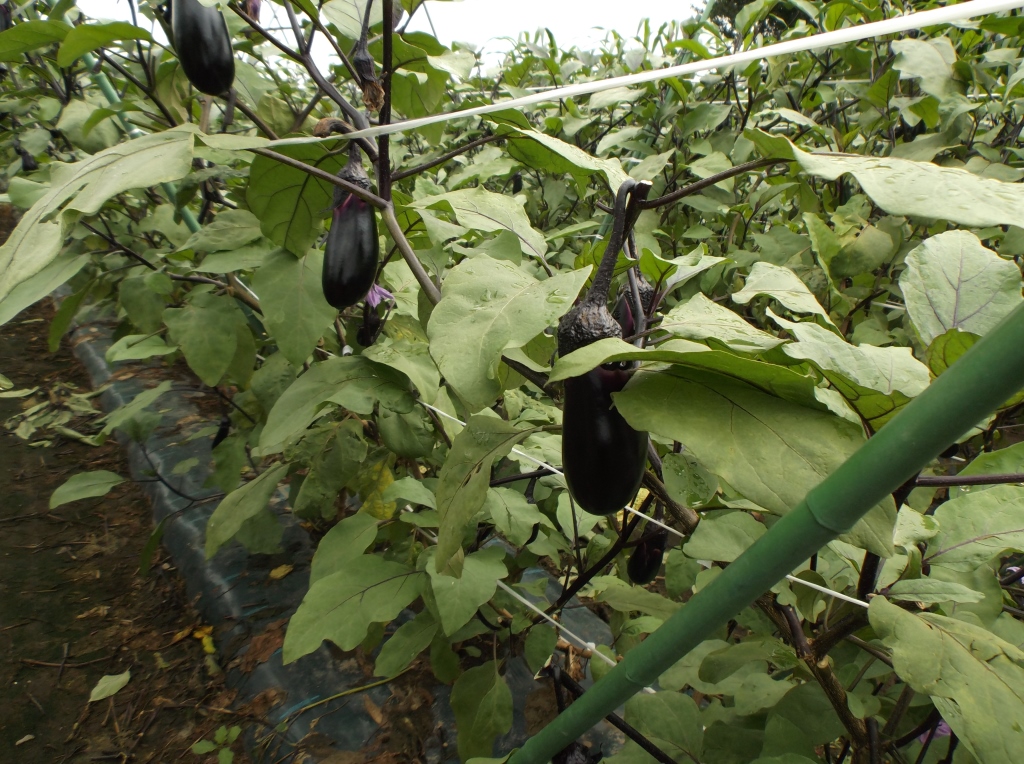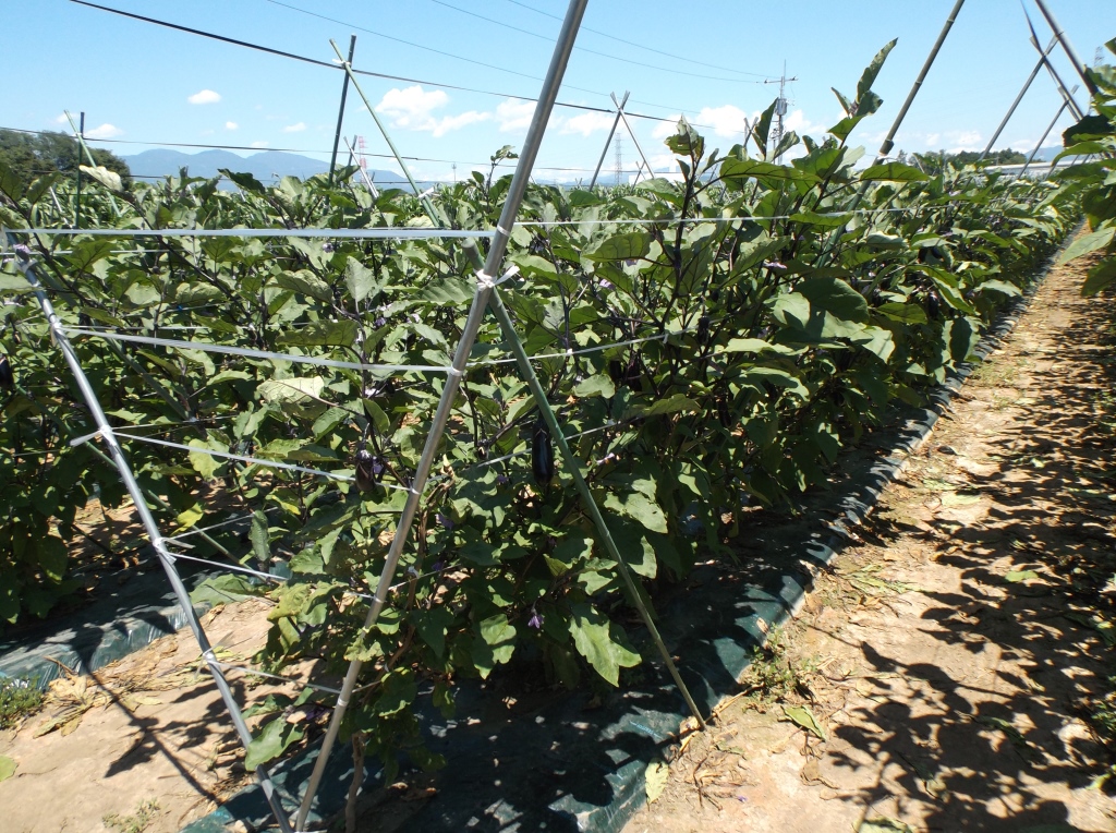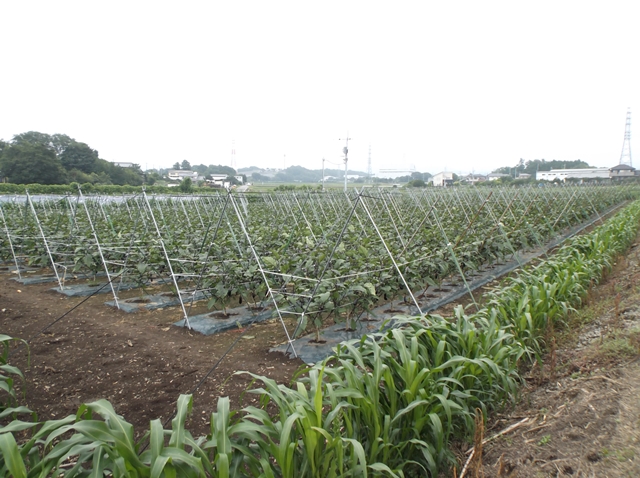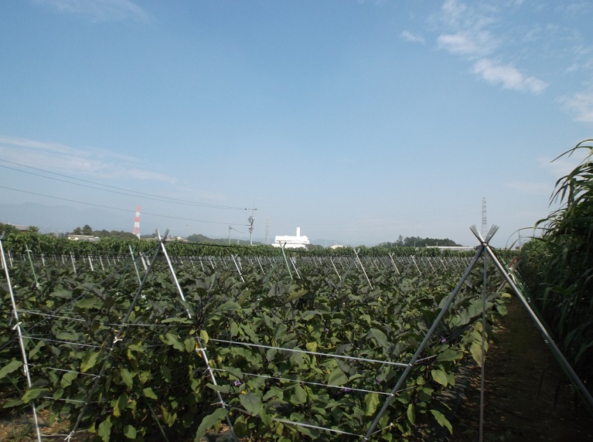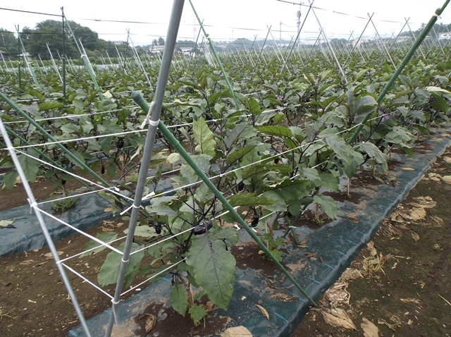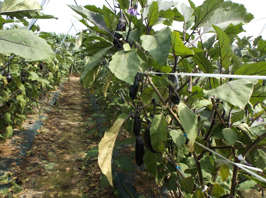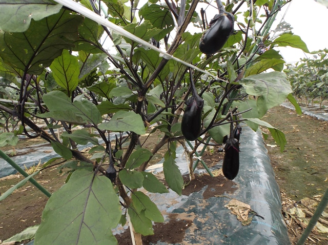 ・この圃場においてはそれほど病害虫は見られず、順調な生育のようであるが、最近はいつになく朝晩の気温が低く、ナスが大きくなるのが遅く、出荷量も平年の2割減となっている。 ・他の生産者も2割ぐらい生産を減らしているとのこと。 | ||||||