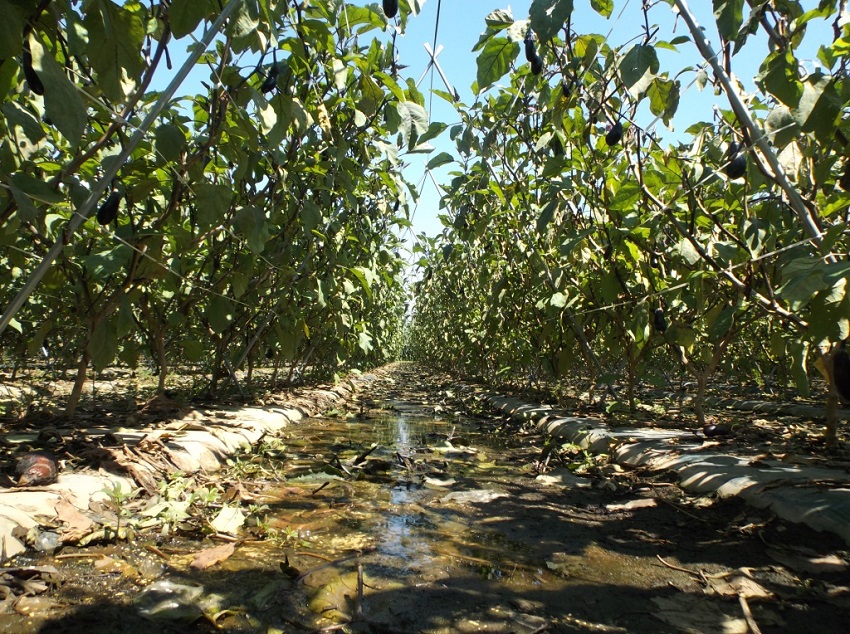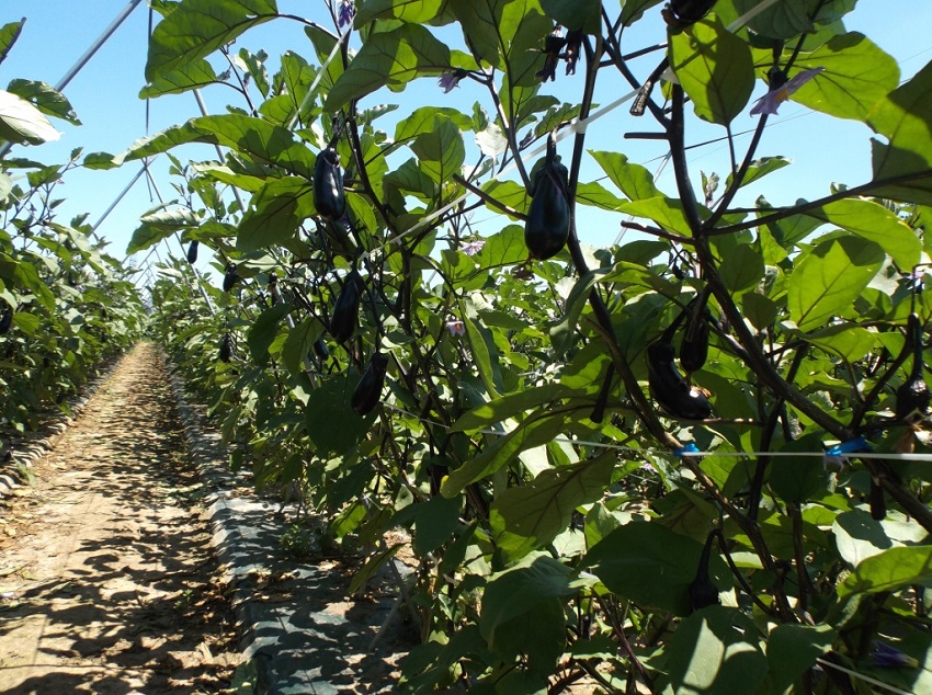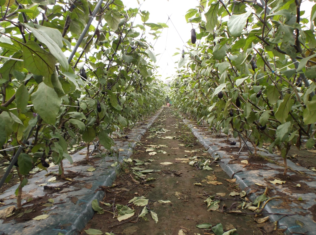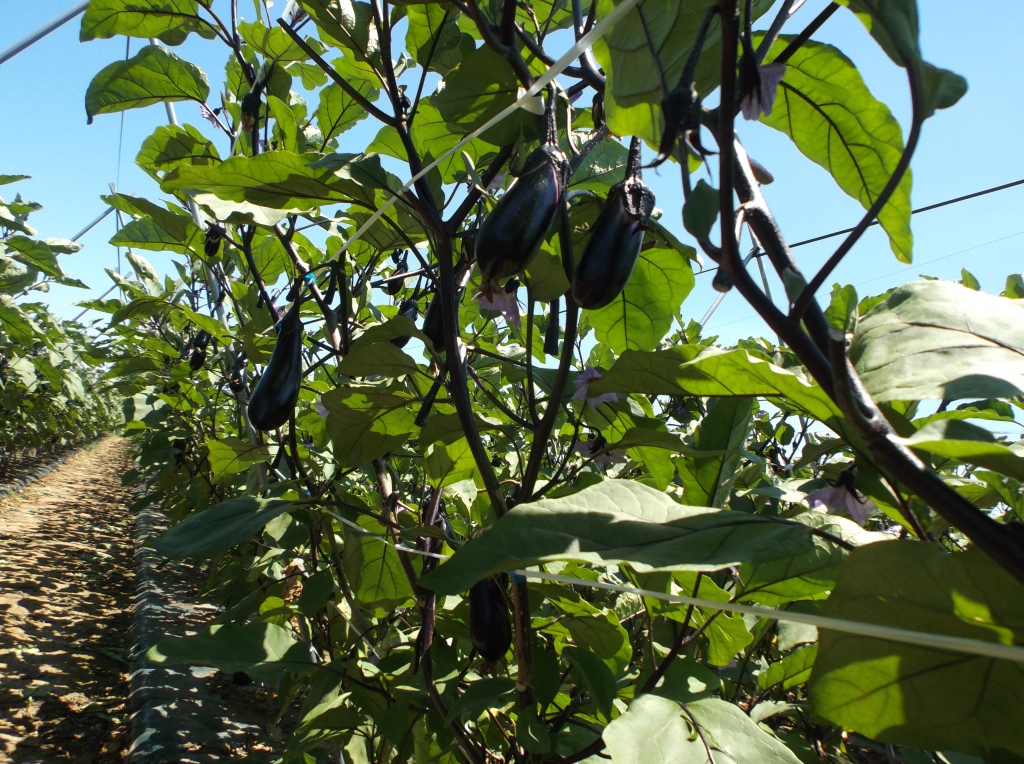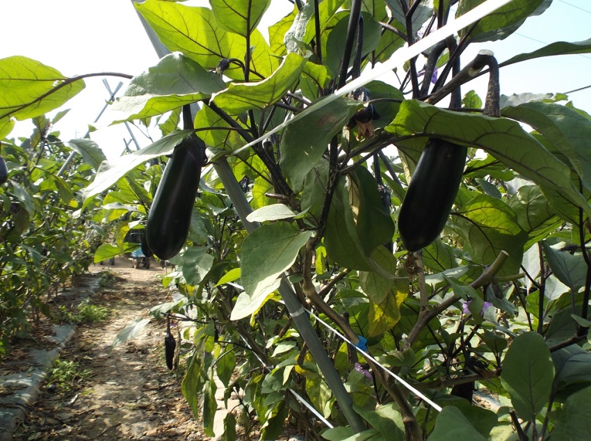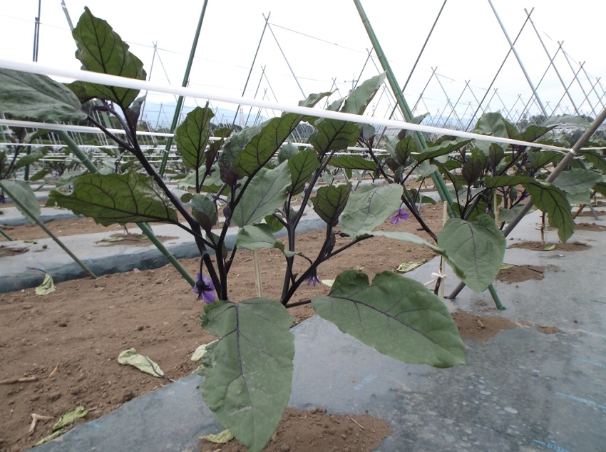 ・この圃場においてはそれほど病害虫は見られず、順調な生育のようであるが、最近はいつになく朝晩の気温が低く、ナスが大きくなるのが遅く、出荷量も平年の2割減となっている。 ・他の生産者も2割ぐらい生産を減らしているとのこと。 | ||||||