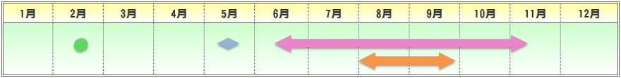 | 播種期 | 定植期 | 収穫期 | 出荷最盛期 |