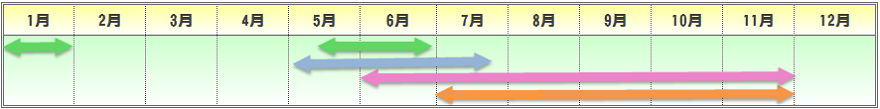 | 播種期 | 定植期 | 収穫期 | 出荷最盛期 |