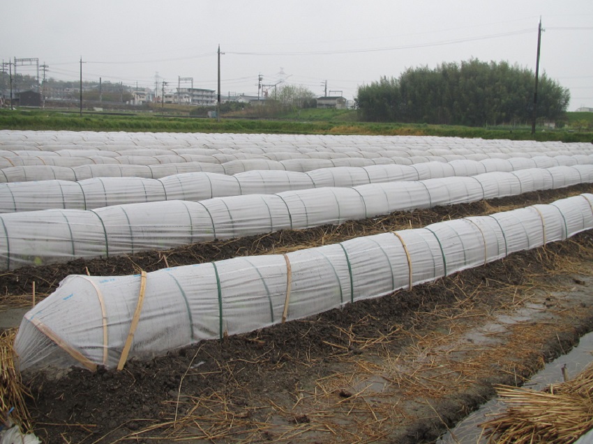 ・昨年度は、定植以後、気温の低い日が多く育成が遅れ気味であったが、今年は活着が順調に進んでいる。