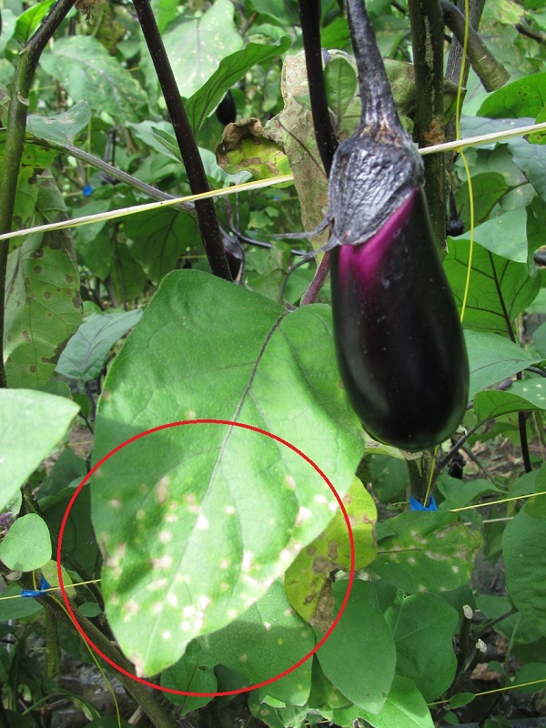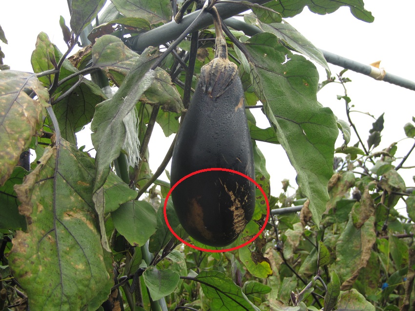 上段:褐色円星病の発生。果実は形状も良く、品質も問題ない。