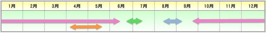 | 播種期 | 定植期 | 収穫期 | 出荷最盛期 |