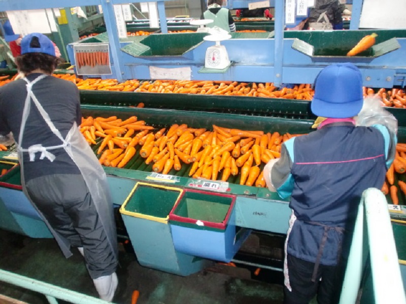 ・約7割の畑が終了し10月にはほぼ終わる。 ・初期の品質は、先細りや形状がゴツゴツしていたが、改善された。 ・出荷比率は、2L・S < L < M か。外品については加工用とジュースに出荷。 ・市場価格は低迷している。