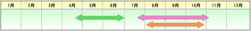 | 播種期 | 定植期 | 収穫期 | 出荷最盛期 |