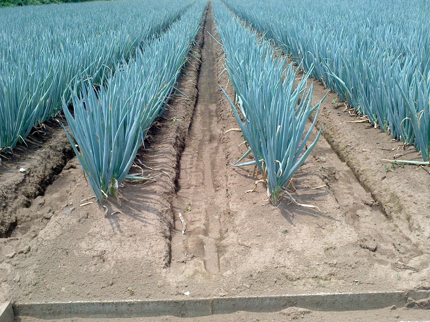 圃場の土の色から乾燥ぎみが分かる。