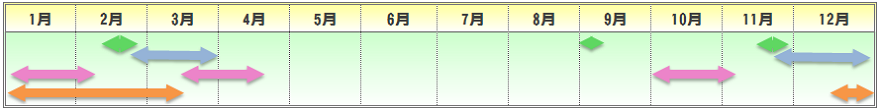 | 播種期 | 定植期 | 収穫期 | 出荷最盛期 |