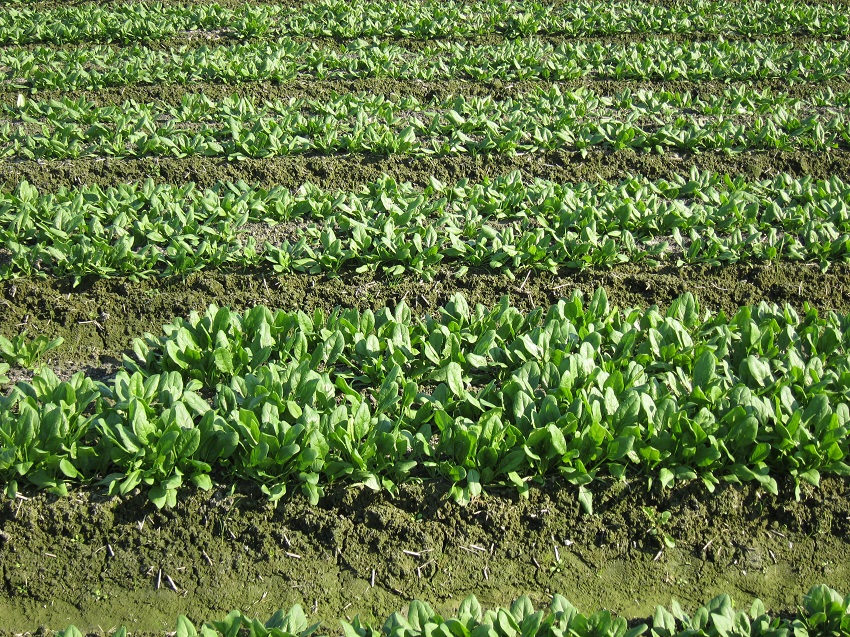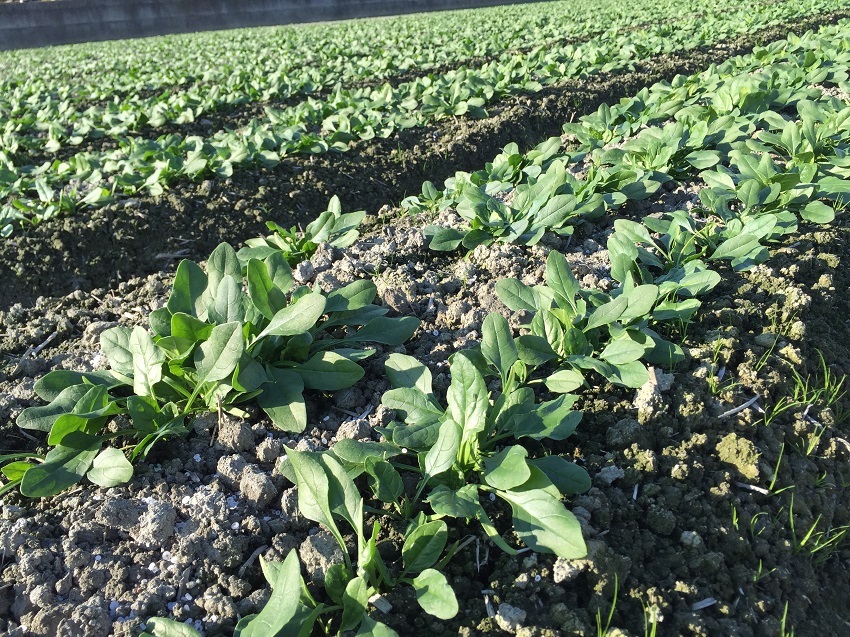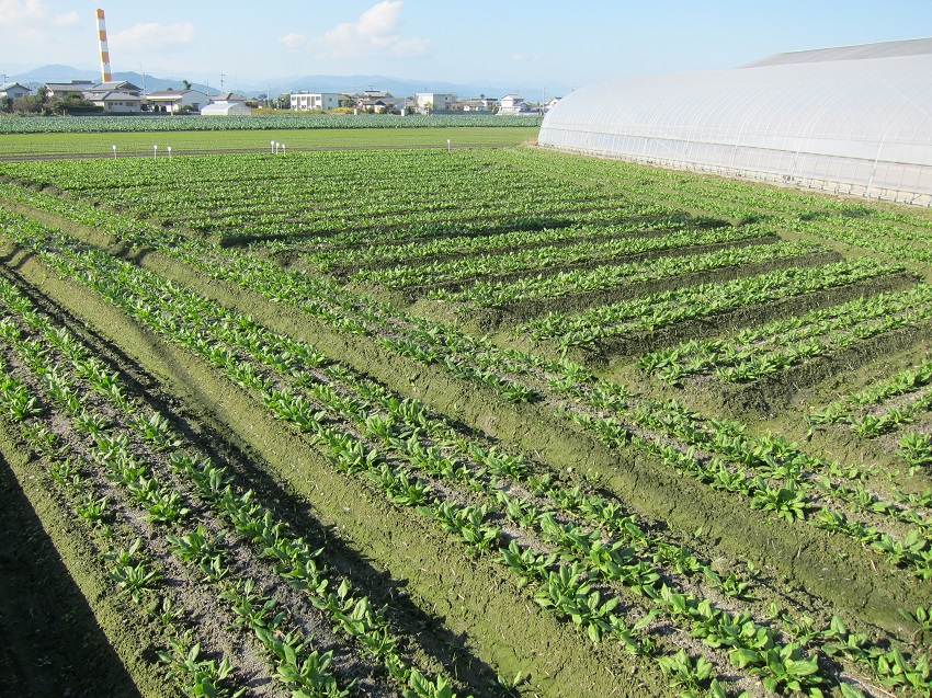 ・写真は畑地の圃場で、気温高に伴い順調な生育を見せている。