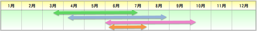 | 播種期 | 定植期 | 収穫期 | 出荷最盛期 |