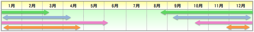 | 播種期 | 定植期 | 収穫期 | 出荷最盛期 |