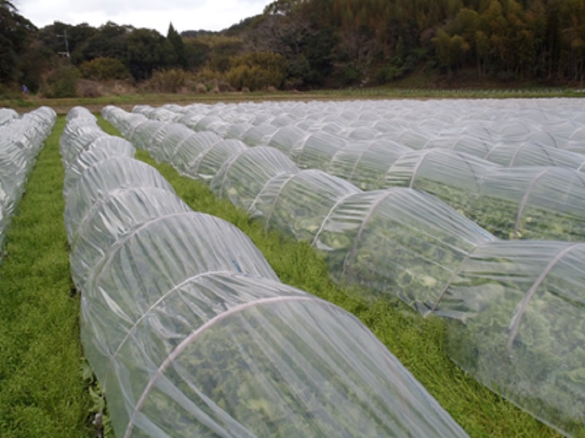 ・撮影日:平成27年1月23日 ・場 所:JA本渡五和 ・上段:10月下旬定植 ・中段:トンネル2重被覆 ・下段:11月上旬定植 | ||||||
