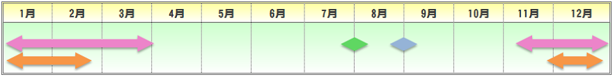 | 播種期 | 定植期 | 収穫期 | 出荷最盛期 |