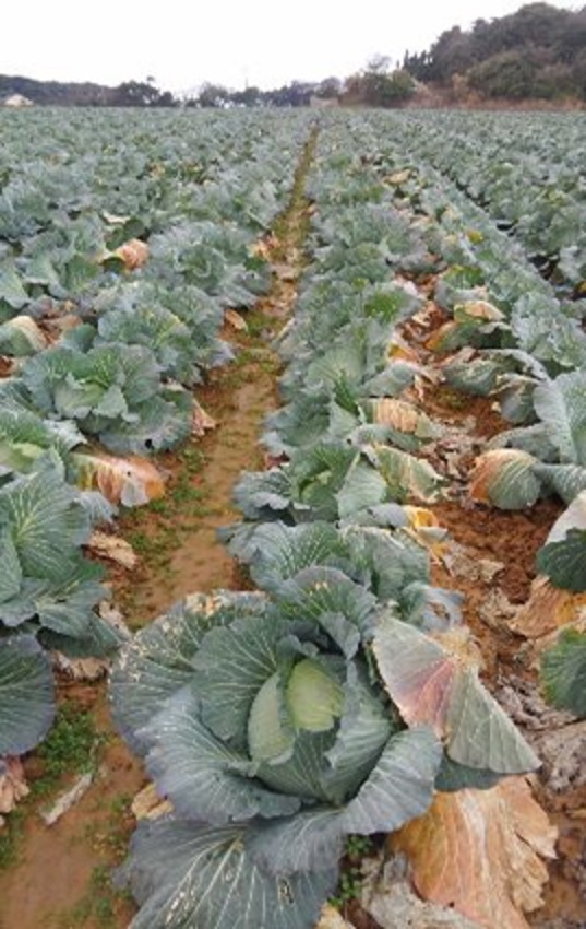 ・タバコ蛾や夜盗虫の発生はほとんど見られないが、一部コナガが見受けられる。