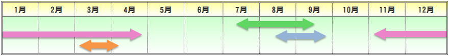 | 播種期 | 定植期 | 収穫期 | 出荷最盛期 |