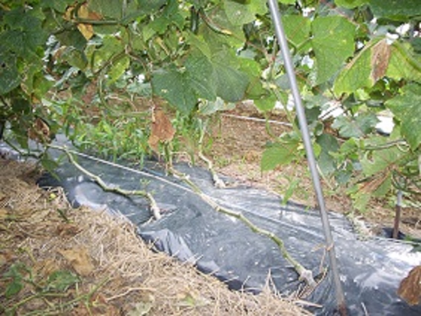 ・ハダニの発生が多少あった。また、上記の柵倒れにより弱った苗を中心に褐斑病やベト病が発生し、中には炭疽病も散見された。