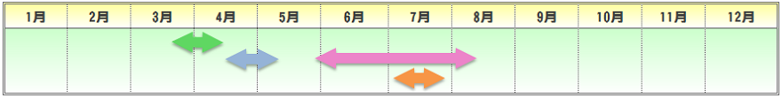 | 播種期 | 定植期 | 収穫期 | 出荷最盛期 |