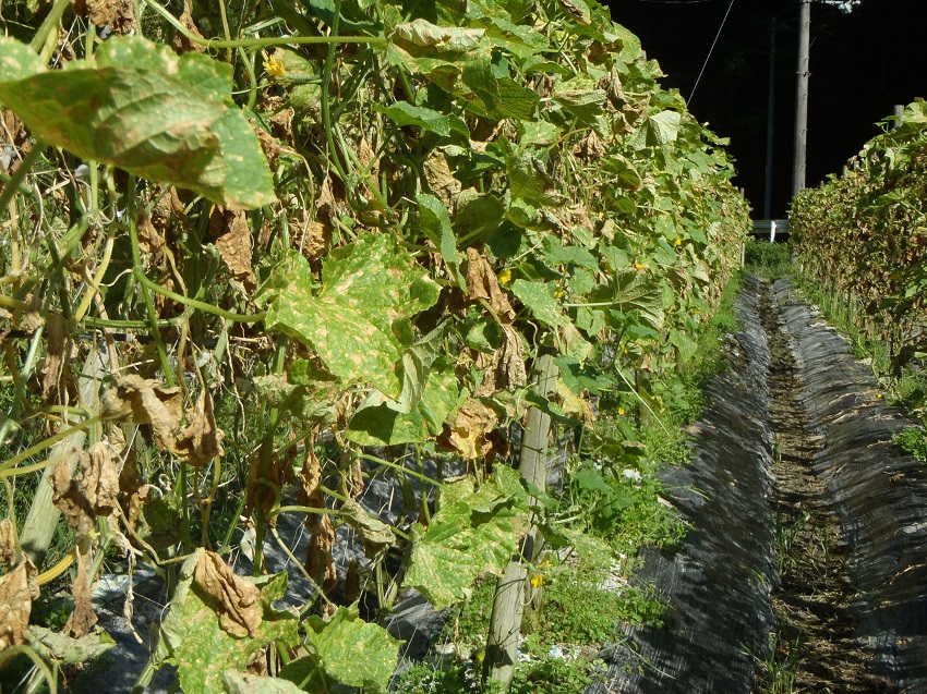 ・圃場により異なるが、ベト病、疫病、褐斑病、黒星病などが発生。ウリノメイガも散見される。