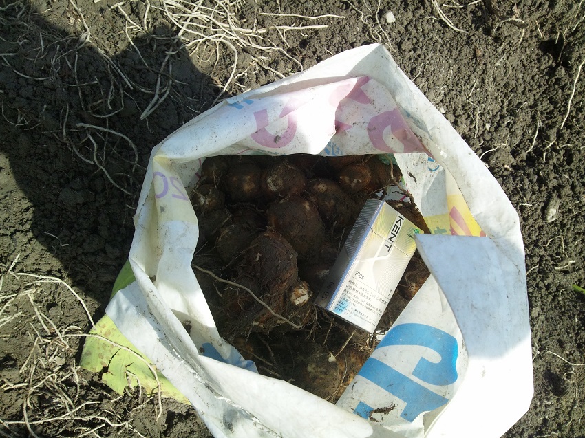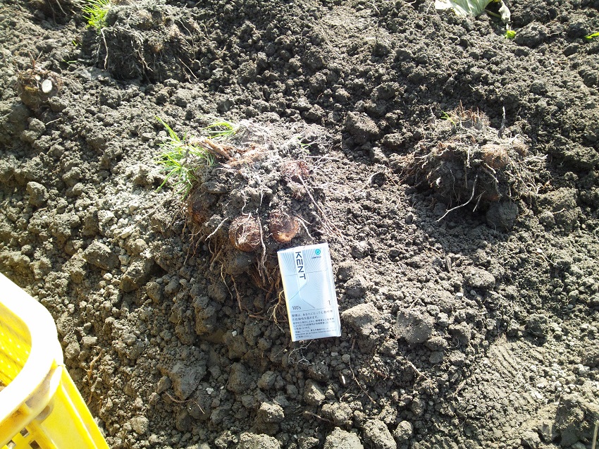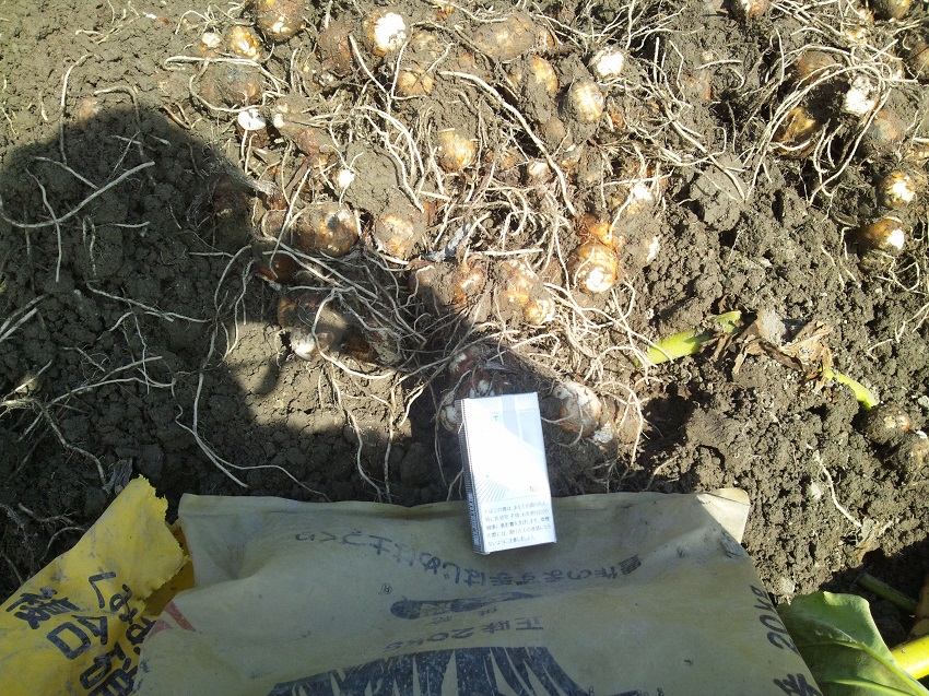 ・中上段:Lサイズの芋が多い。 ・中下段:Lサイズの芋が多い。 10月15日より、JA選果場集荷開始。 ・下段:芋茎はほとんど枯れてきた。 | ||||||