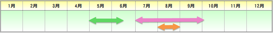 | 播種期 | 定植期 | 収穫期 | 出荷最盛期 |