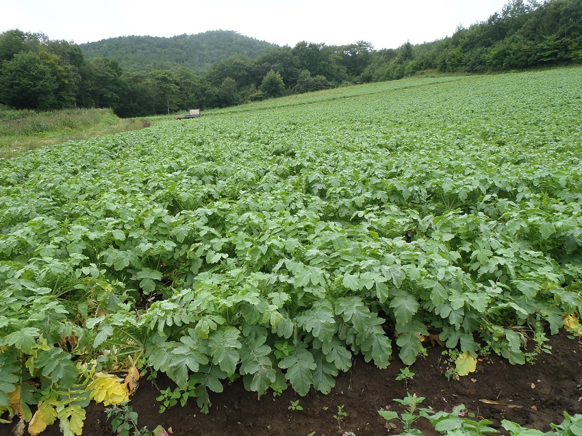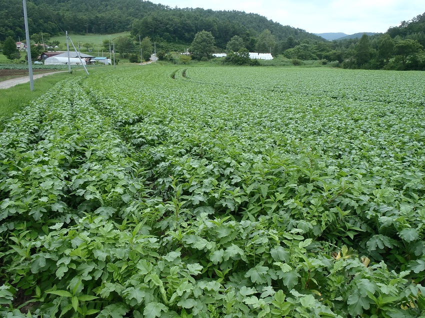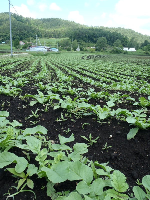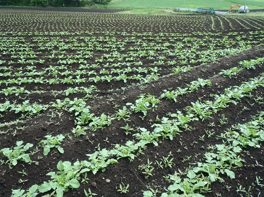 干ばつ気味だが、生育状況は概ね順調であり、7月下旬頃から出荷開始出来るものと見込んでいる。 しかし、5月初めに播種を行った圃場では、播種後に低温期が続いたため、生育できないものも出ており、出荷量減少が懸念される。 | ||||||