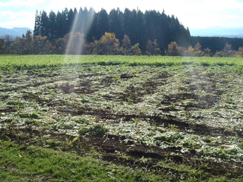 ・場所:JA阿蘇 小国郷管内 ・生育状況:8月上旬より播種が始まり、9月中旬まで続く。 8月25日の台風通過により、生育に影響を及ぼしている。 ・中下段、下段:8月中旬播種。 | ||||||